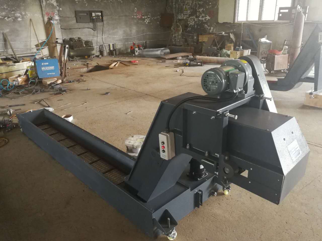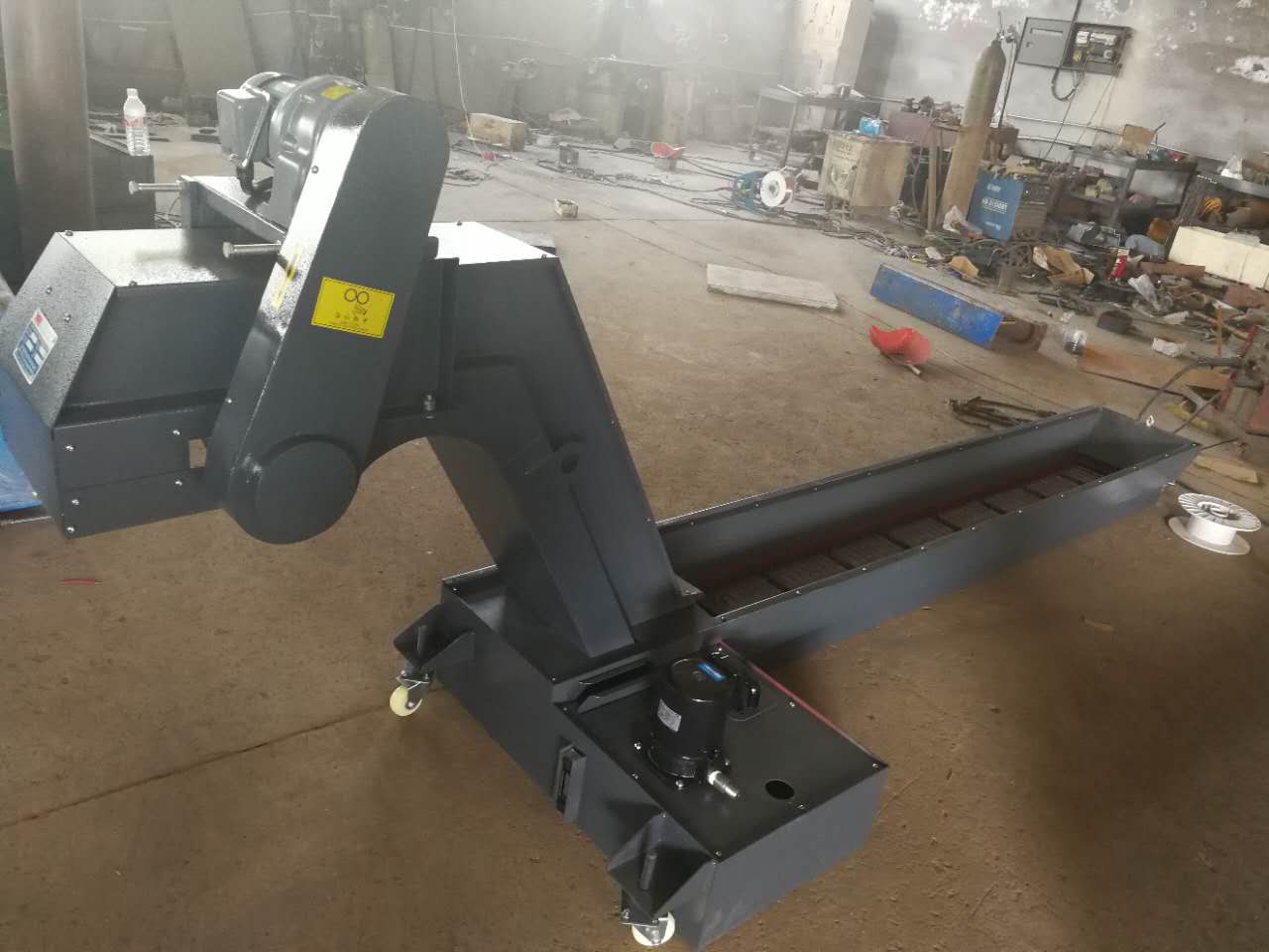 3、排屑機配有過載保護裝置,防止有大工件掉落卡死排屑機時損壞電機